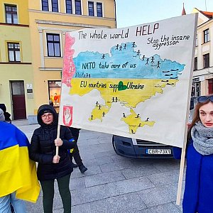 W niedzielne popołudnie na Duży Rynek w Brodnicy przybyły tłumy. - Drodzy bracia, bratny narodzie - powiedziała pochodząca z Ukrainy Maryna Marciniak do zebranych rodaków i mieszkańców Brodnicy. - Teraz wiemy, kto jest bratem, a kto kłamliwym ścierwojadem. Błagam wszystkich o pomoc i wspólną walkę.