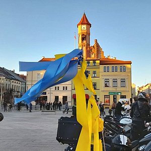 Już o godz. 16 w centralnym punkcie Brodnicy zaczęli pojawiać się mieszkańcy zapowiedzianego na godz. 17 wiecu solidarności z Ukrainą. Najpierw pojawili się motocykliści, którzy kilka razy przejechali okolicznymi ulicami. Z każdą minutą dochodziły kolejne grupki, w tym wielu mieszkających u nas i pracujących w licznych zakładach Ukraińców. Przy nieczynnej obecnie fontannie koncertowała jabłonowska grupa Podniebnie wykonująca szlagiery Pink Floyd z polskimi tekstami.
