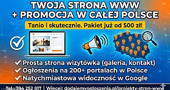 Promuj ogłoszenieNie chcesz wydawać fortuny na stronę internetową? Świetnie - mamy coś w sam raz dla Ciebie! W ramach naszej oferty „Strona ... czytaj więcej